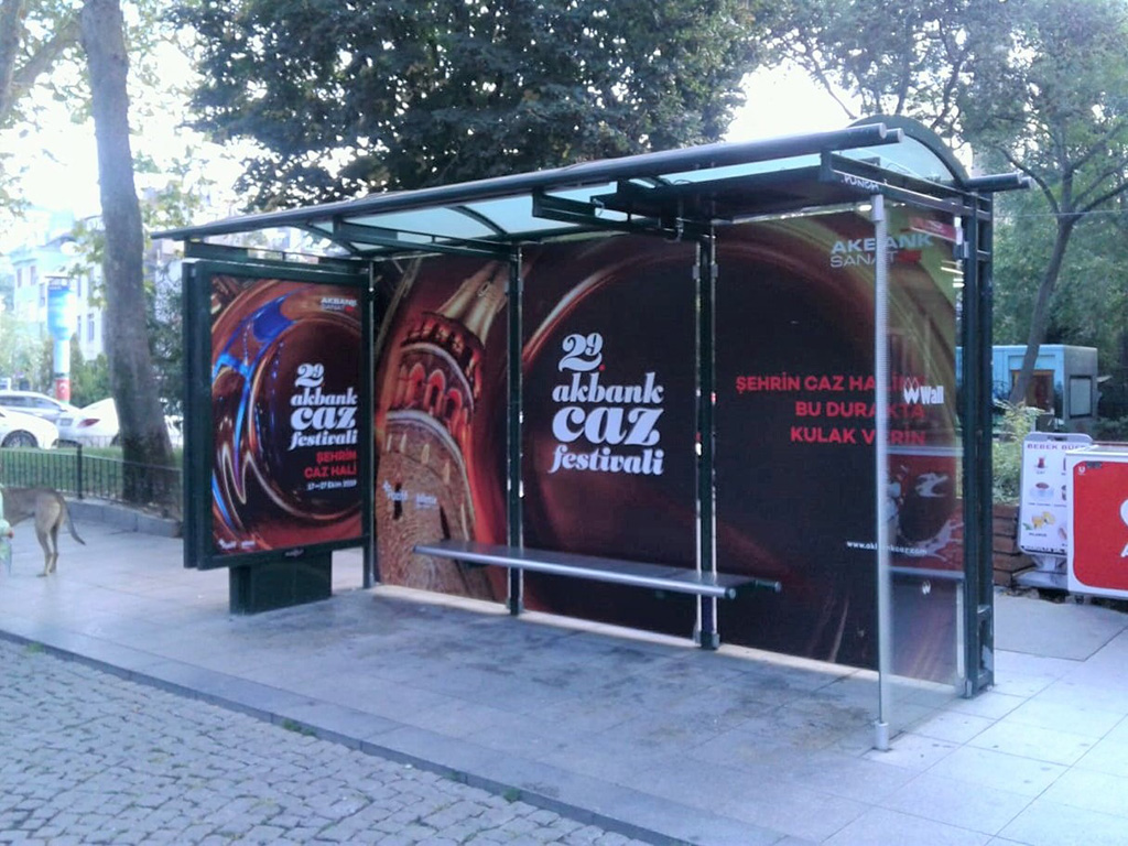Akbank , 29. Caz Festivalini Beşiktaş-Bebek Panout Medya Durağında Holosonik ses sistemi ile durak giydirme yaparak hedef kitlesine duyurdu.